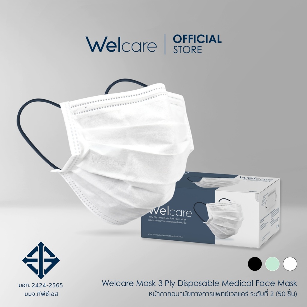 [Official] หน้ากากอนามัย Welcare ทางการแพทย์ 3 ชั้น ระดับ 2 ช่วยป้องกันฝุ่น PM2.5 50 ชิ้น/กล่อง